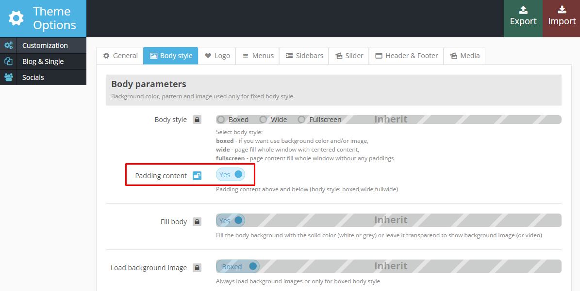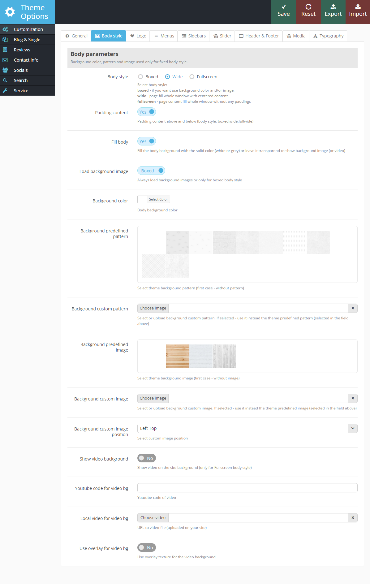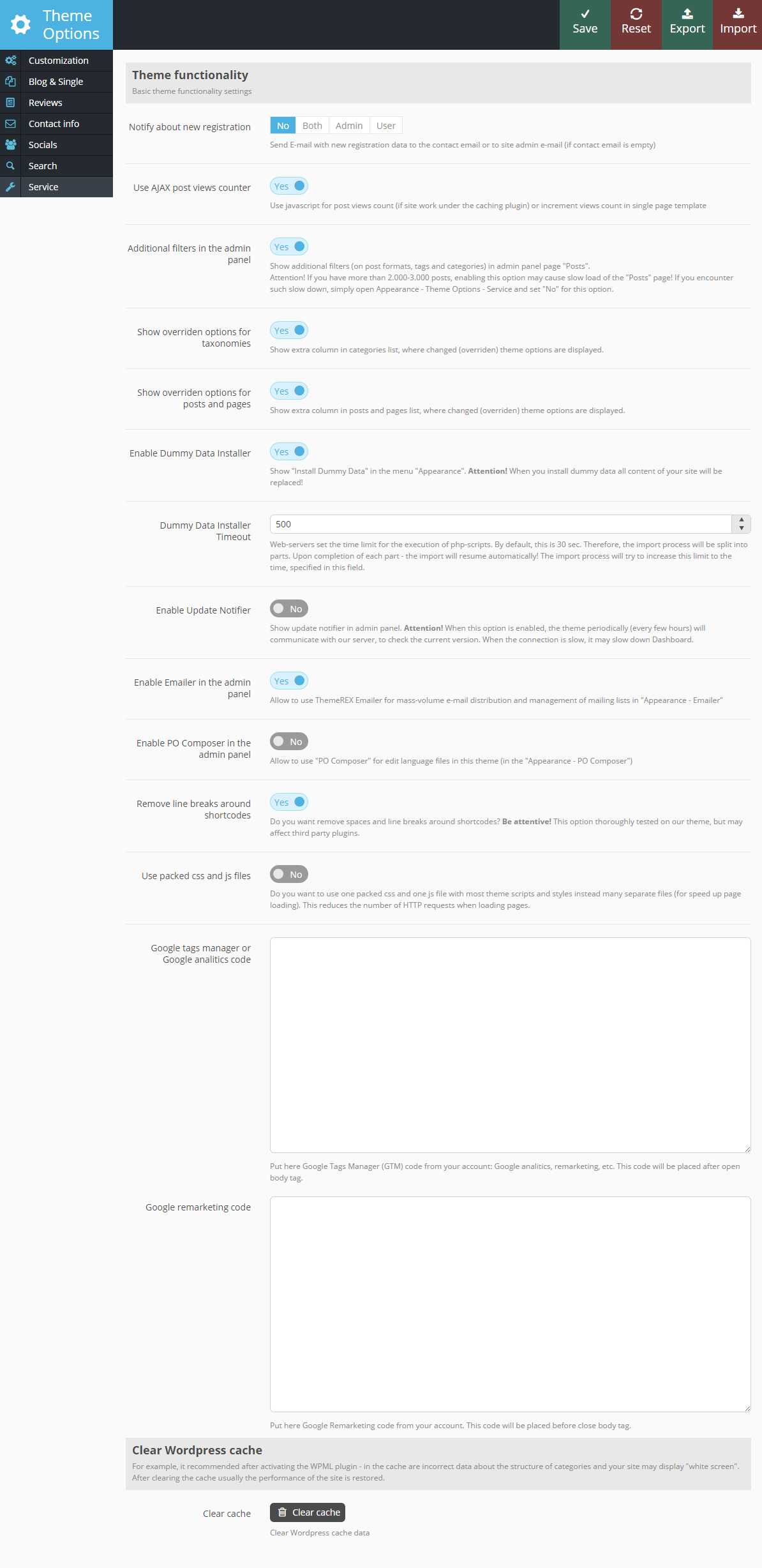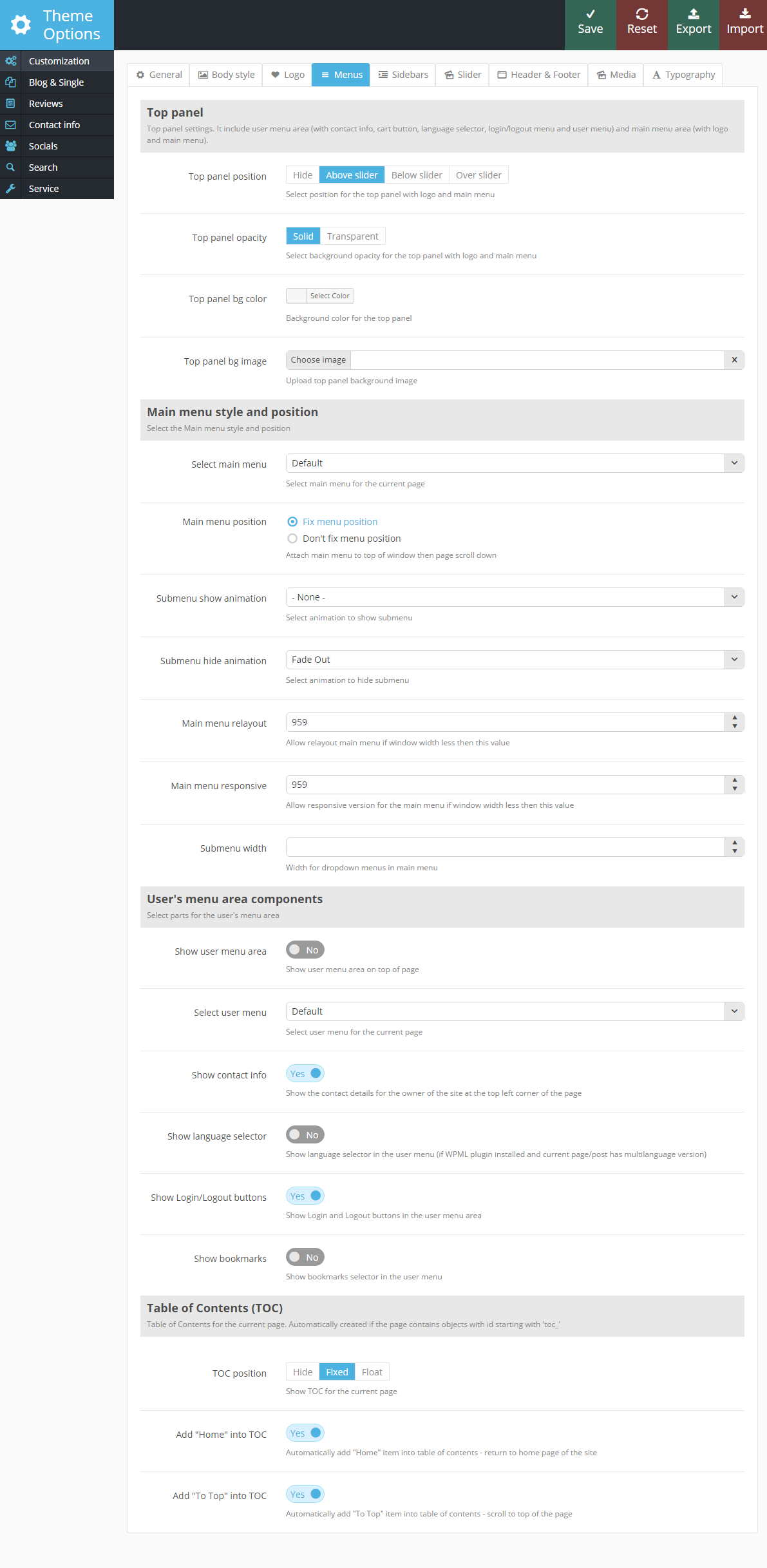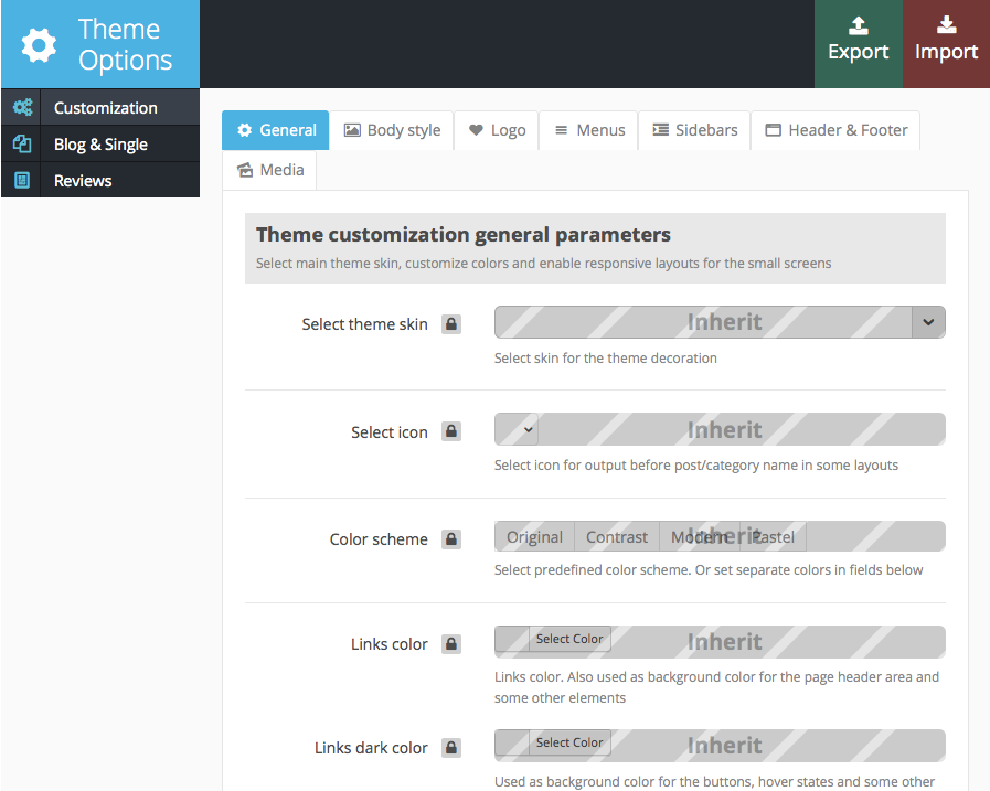 However, if you have an existing website, you should be very careful with plugin installation and importing dummy data - this may effect your site content and structure. Please read the Demo Content article for details. - A new menu item Appearance -> Theme Options. will appear.