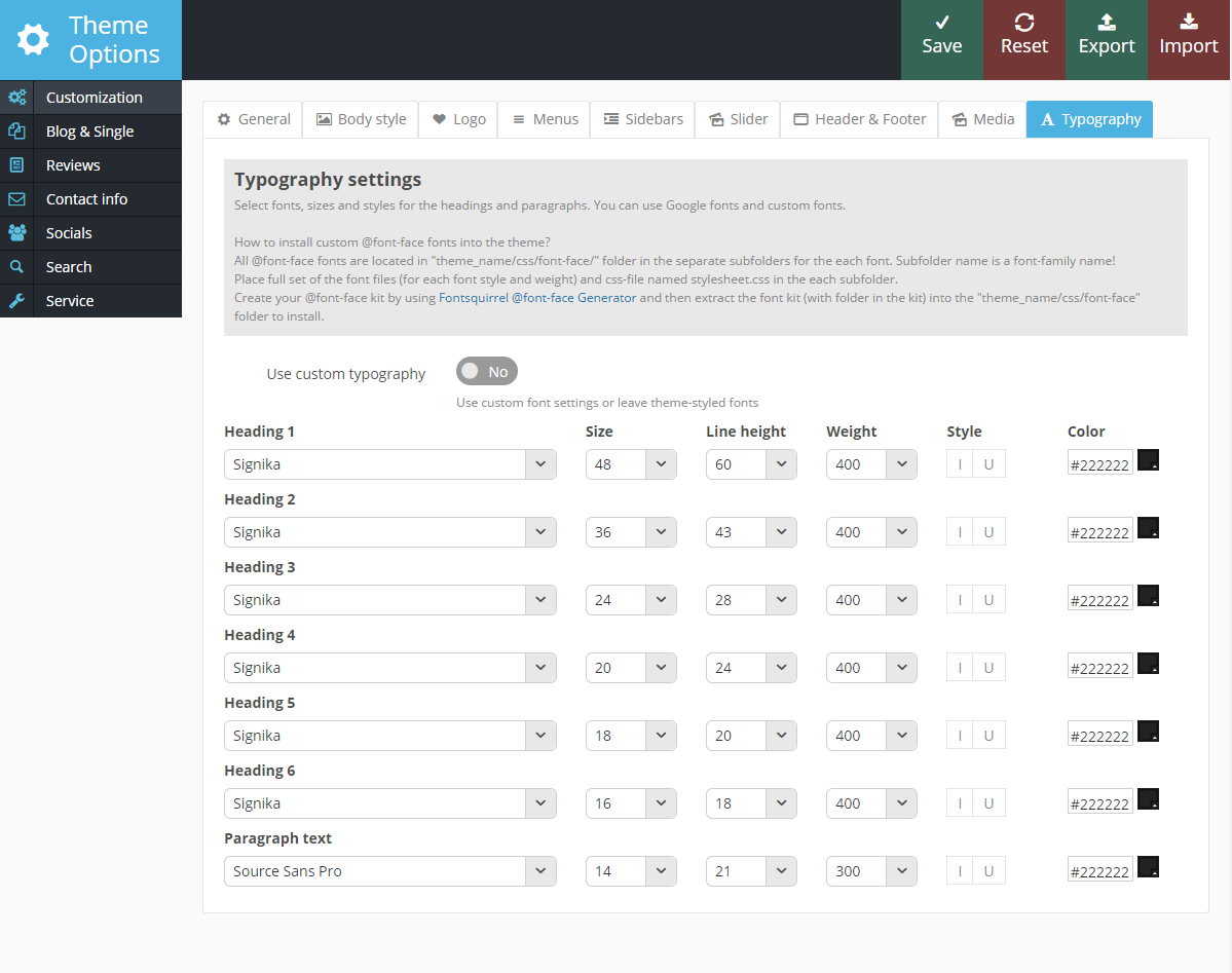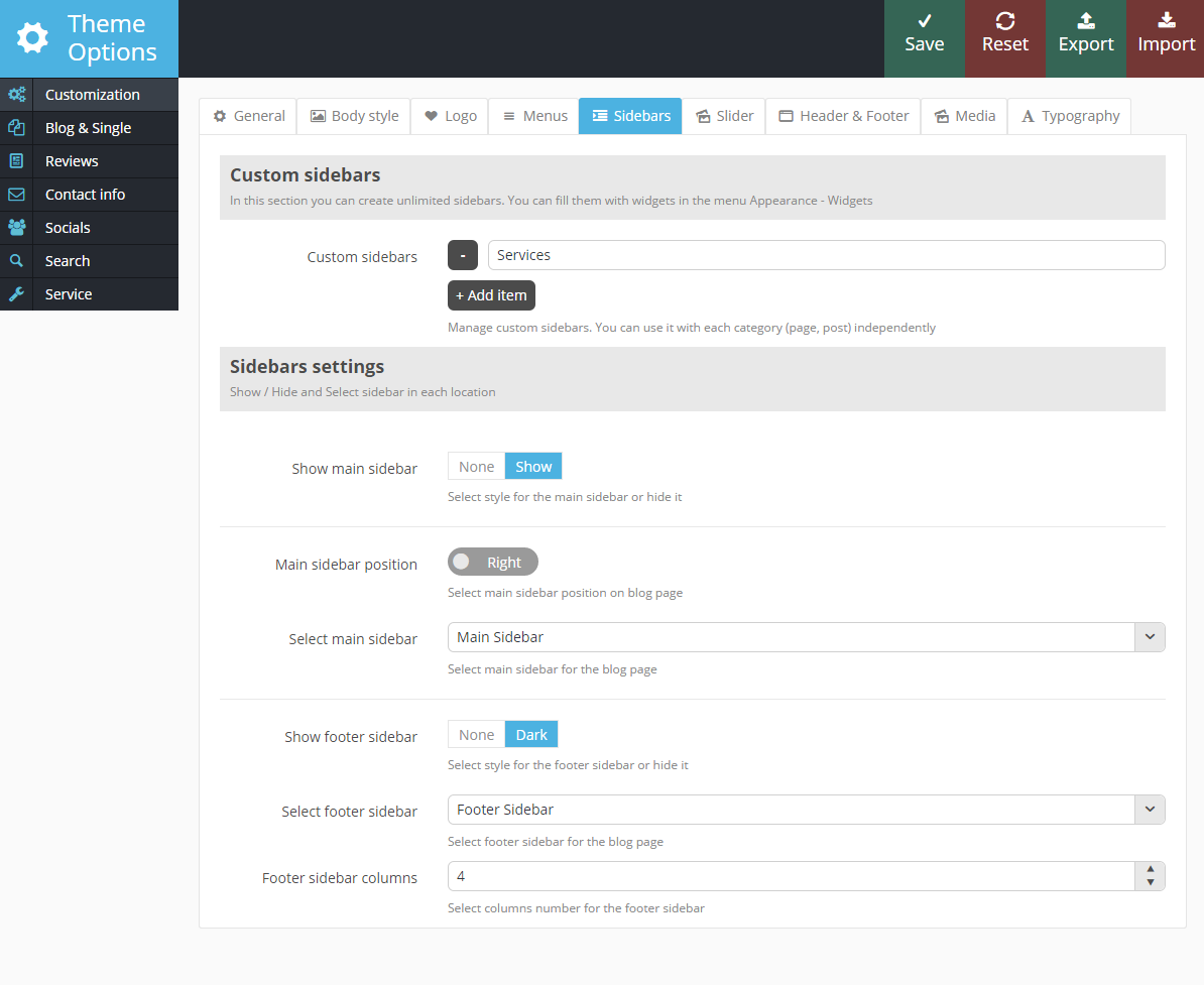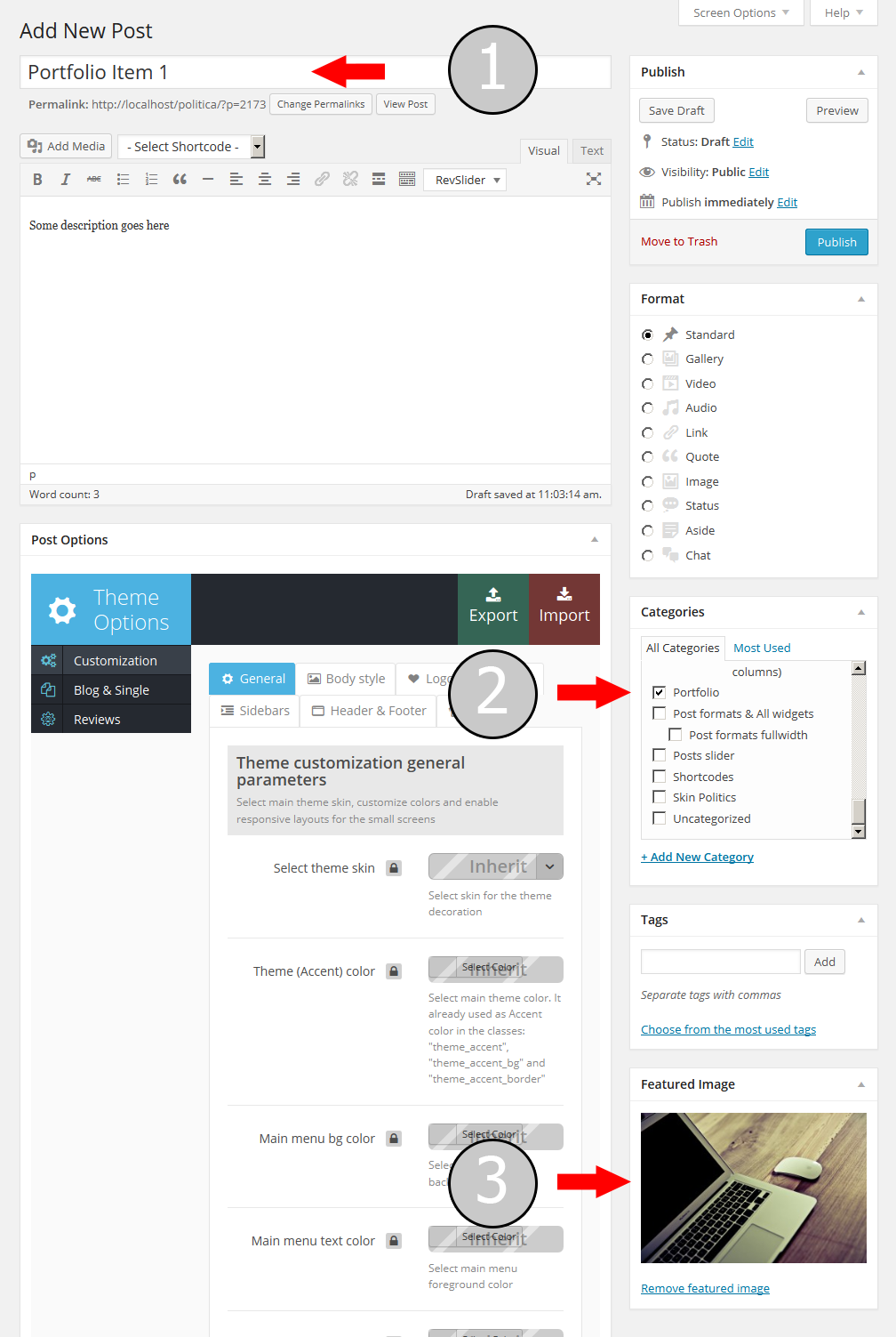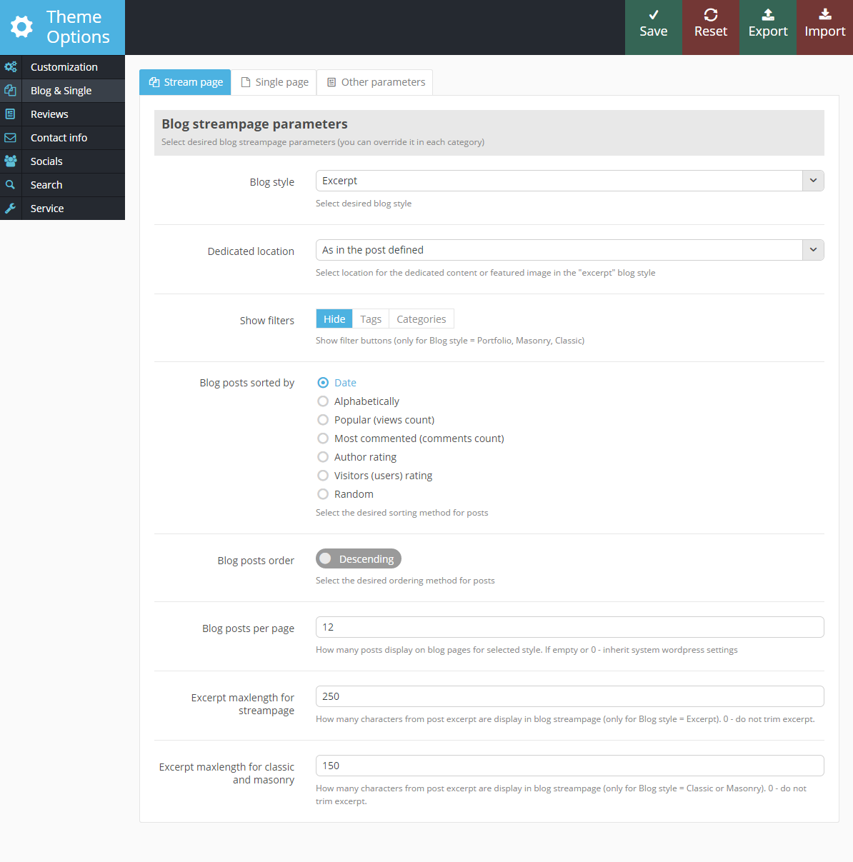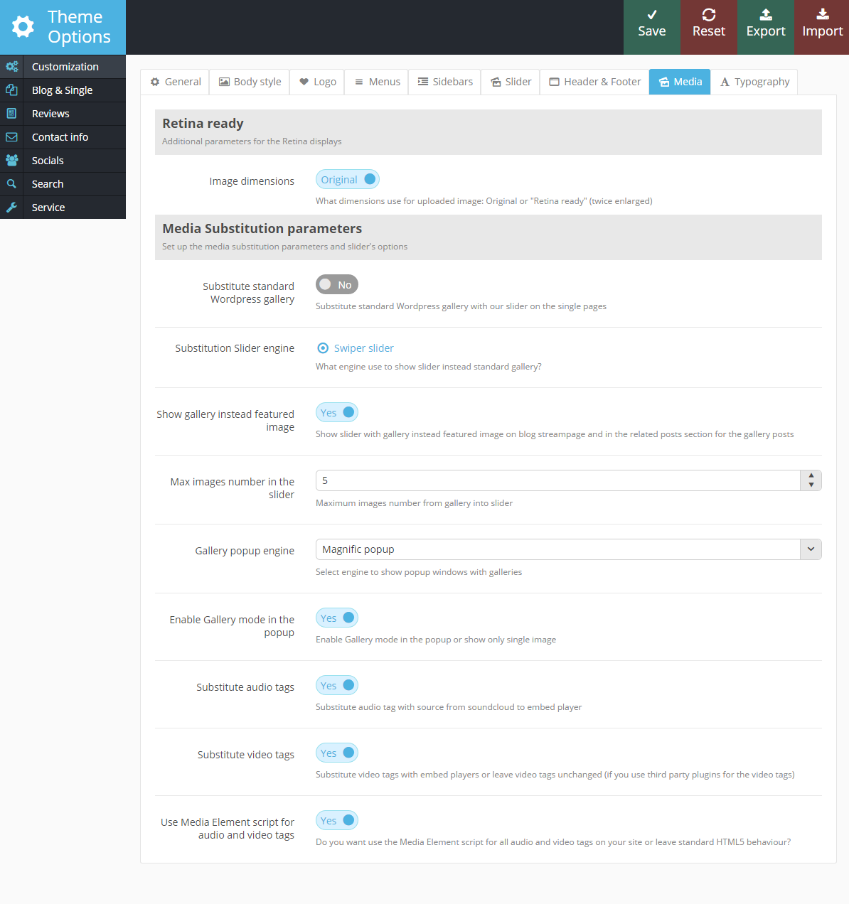However, if you have an existing website, you should be very careful with plugin installation and importing dummy data - this may effect your site content and structure. Please read the Demo Content article for details. - A new menu item Appearance -> Theme Options. will appear.