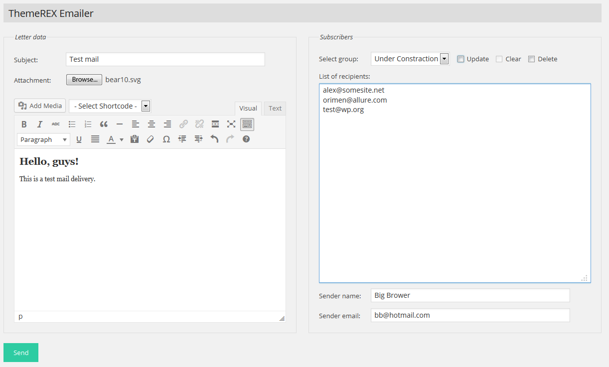 If you want your site visitors to be able to subscribe to any kind of newsletters, simply create a page (post) newsletter description, and add a shortcode [trx_emailer group = "mail_delivery_name"] to it, where mail_delivery_name is a name of the list of subscribers. That's it!