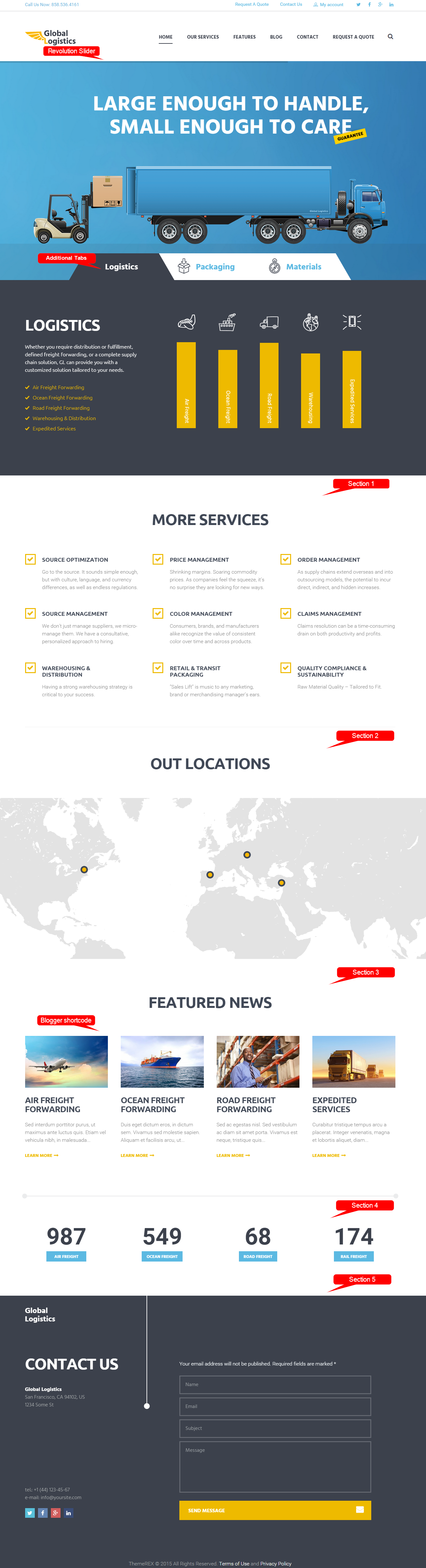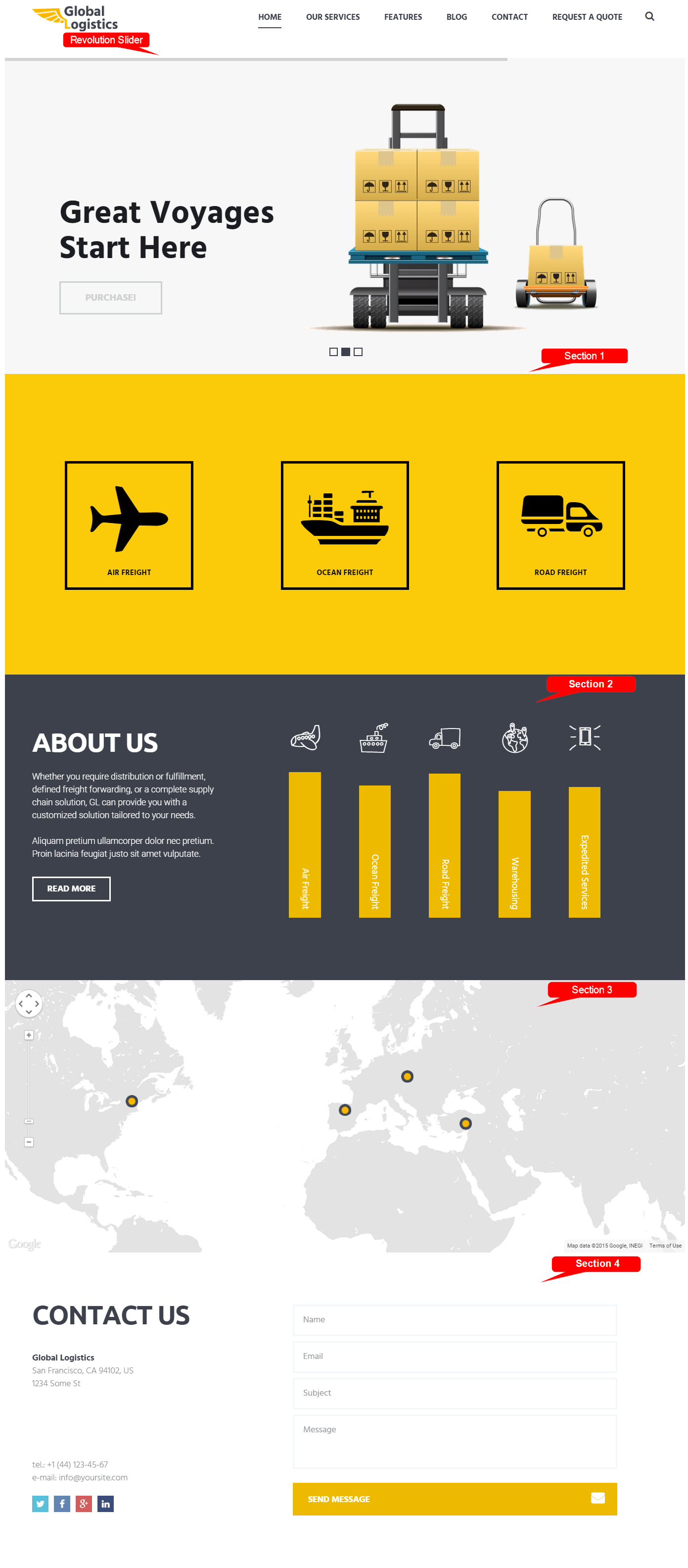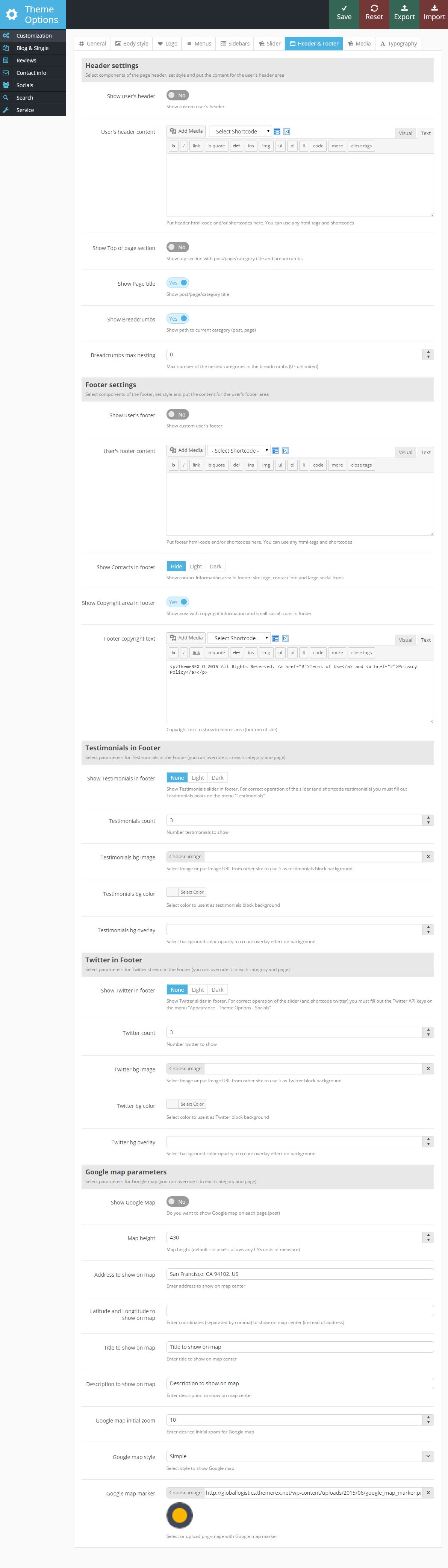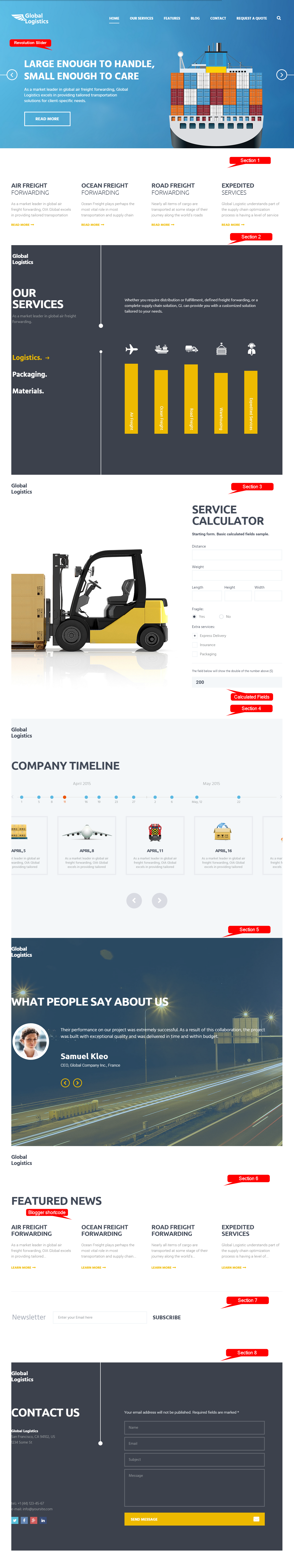 - Upload the extracted /Global Logistics theme folder into /wp-content/themes folder