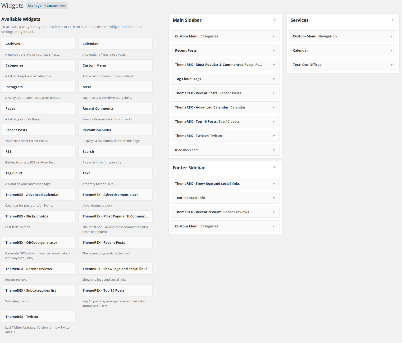 plugins: Instagram Widget, Revolution Slider, Tribe Events Calendar, Visual Composer and WooCommerce.