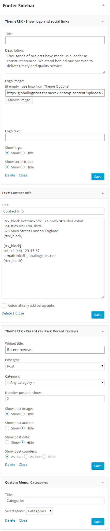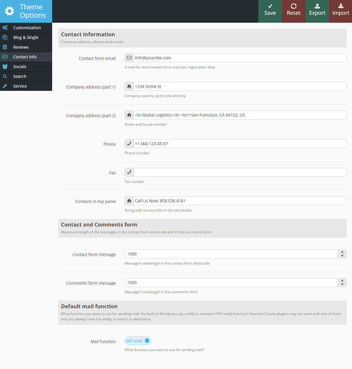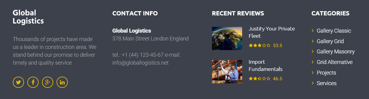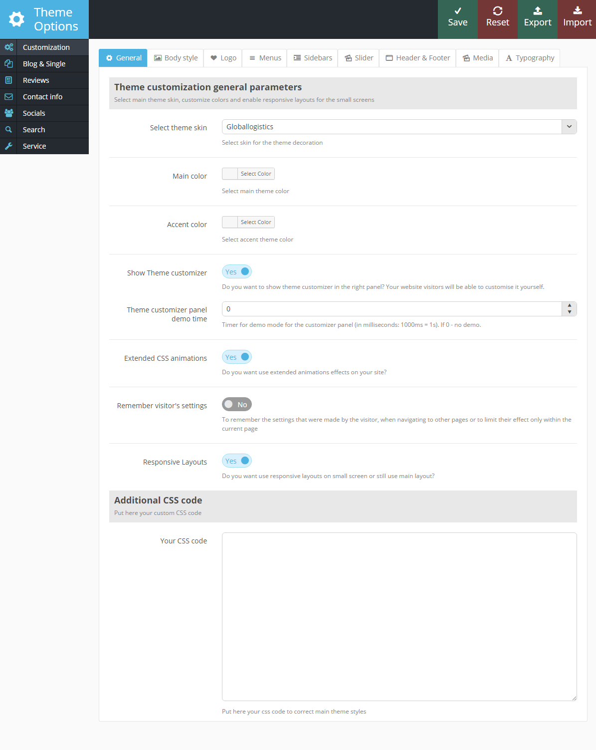 In the theme pack you will see materials for the child theme. It’s located in the "Global Logistics-child.zip" archive. You can install the child theme the same way as you install the main theme (see above in the section "Installation")